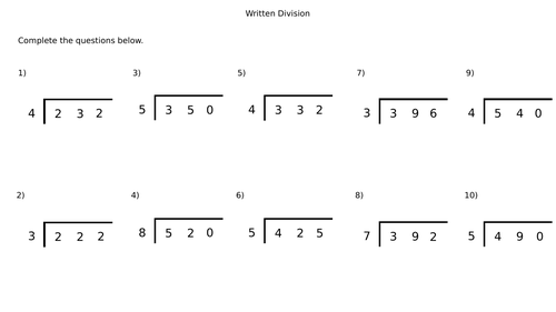 Long division worksheets for grades 4-6 - Homeschool Math The worksheets on this page are divided into three major sections: Single-digit divisor; Two-digit divisor; Three-digit divisors; Please note: worksheets for long division with remainders are on their separate page. All the problems in the worksheets on this page are exact divisions (no remainder). Basic instructions for the worksheets Printable Division Worksheets for Teachers - Math-Aids.Com WebThese long division worksheets the number of digits for the divisors and quotients may be varied from 1 to 3. You may select whether the long division problems have no remainders, remainders, or mixed. These long division worksheet answer keys may be displayed with a remainder or as a fraction. These long division worksheets may have … Math Worksheets: Long Division: Long Division: Division by … WebDivision by Factors of 25 With Remainders: These long division worksheets focus on factors of 25. There are two groups of worksheets, including sets with remainders and sets without remainders. (Third Worksheet) Resource Type: Worksheet: US Grade Level: 4th Grade, 5th Grade, 6th Grade: Age Range: 9-12 Math Worksheets WebThese worksheets start out with simple division picture problems where only basic counting skills are required to come up with subtraction number sentences, but later worksheets require students to produce a similar grid illustration to demonstrate their understanding of division concepts, including remainders. These are a perfect first …